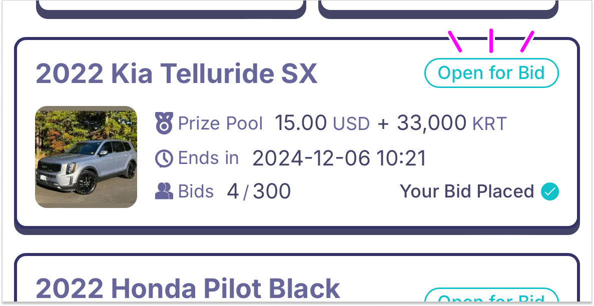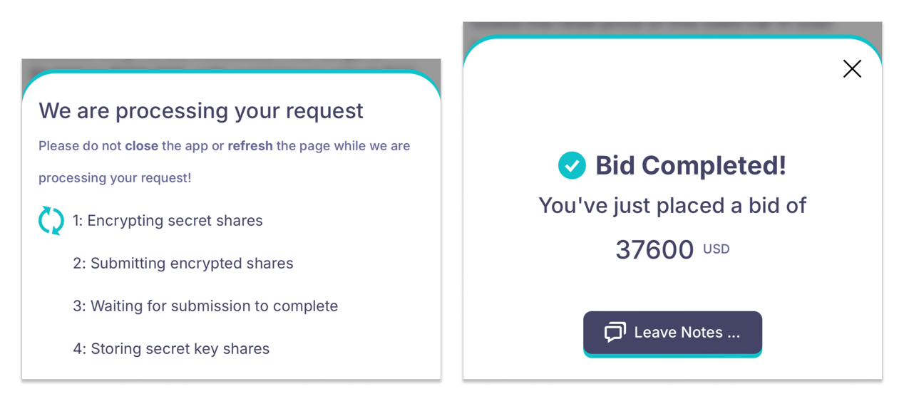 The bidding process uses blockchain-based blind bidding, which may take a little time. Be patient and avoid closing the screen.