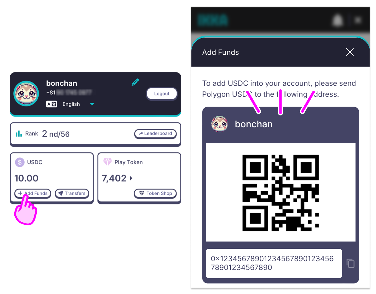 IKKA operates on the Polygon network. Sending USDC from a different network will result in the tokens becoming unusable.